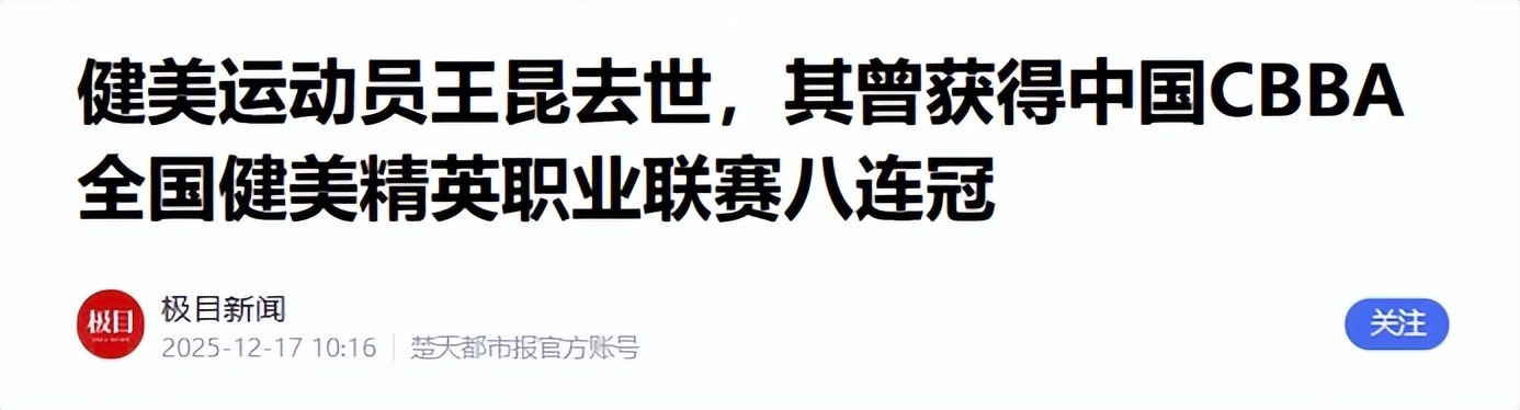 身为中国健美国家队主力运动员,王昆的大名享誉健身圈,但今年才30岁的他,骤然离世。